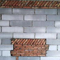 新砌墻體頂部高200mm處采用實體磚45°~60°角砌筑密實,新砌墻體與混凝土墻的搭接:新砌的非承重隔墻應沿墻高每隔 500~600mm配置2φ6 拉結筋與墻體或柱拉結,拉結筋伸入新砌墻內的長度不得小于500mm。每五片磚留設一個馬牙槎,搭接位置原石灰層、膩子層、粉灰層鏟除。